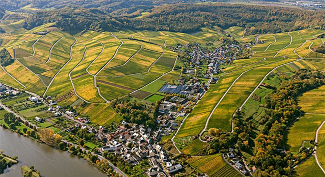 盧森堡是個內(nèi)陸小國,僅有999平方英里的國土,與比利時、德國和法國毗鄰。所有的葡萄園都分布在該國與德國的邊界河26英里長的河段內(nèi)。德國的Mosel出產(chǎn)強勁濃郁的葡萄酒,而盧森堡的Moselle出產(chǎn)的葡萄酒則較為柔和。