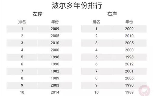 實際上,在波爾多的左岸和右岸地區(qū),同一年份的表現也略有不同(見下圖)。