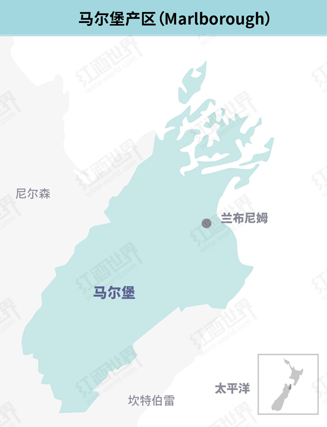 馬爾堡位于新西蘭南島的東北部,葡萄種植面積超過2萬公頃,約占新西蘭葡萄總種植面積的2/3,是新西蘭最大的葡萄酒產區。