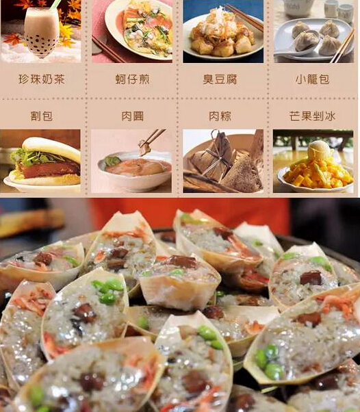 臺(tái)灣美食融合閩南、潮州、客家和日本的煮食風(fēng)格,單單是臺(tái)北,已有超過20條著名的小食街。一流的掃街小食如蚵仔煎、鹽酥雞、牛肉面和鹵肉飯等,深受全球游客歡迎!