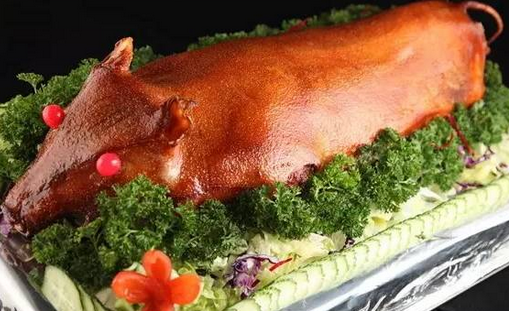 制作烤乳豬的時(shí)候先將內(nèi)臟去掉,取香料腌制入味,再進(jìn)行烤制,另外,豬皮含大量膠原蛋白,有養(yǎng)顏健膚功能。乳豬較瘦,脂肪含量少。色澤紅潤(rùn),光滑如鏡,皮脆肉嫩,香而不膩,讓你百吃不厭。