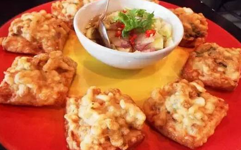 把去了殼的鮮蝦肉剁碎,打成蝦膠后,裹在甘蔗枝上置于鍋里油炸而成。外皮金黃酥脆,還粘著星星點(diǎn)點(diǎn)的面包糠,蝦肉由于吸收了甘蔗的清甜,既香,又鮮、嫩、甜。