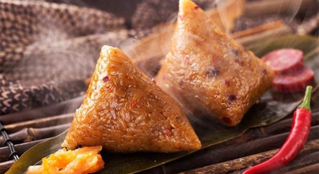 以上等醬油腌制的新鮮肥瘦豬肉為餡,有些地區還搭配著板栗、花生、香菇等配料。煮熟后的粽子是肉味濃郁、香滑軟糯,口感鮮香。