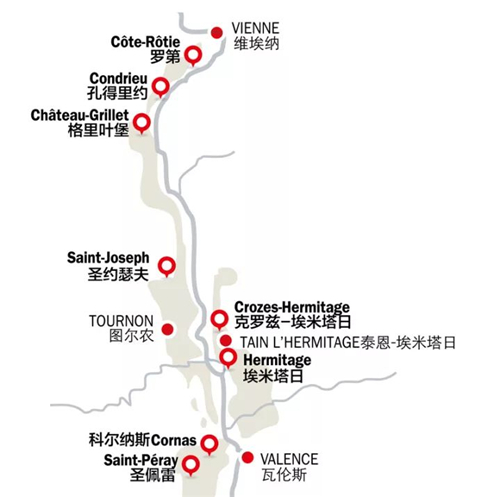 北羅納河谷最有名的產區(qū)當屬羅第(Côte-Rôtie)產區(qū)和埃米塔日(Hermitage)產區(qū)。