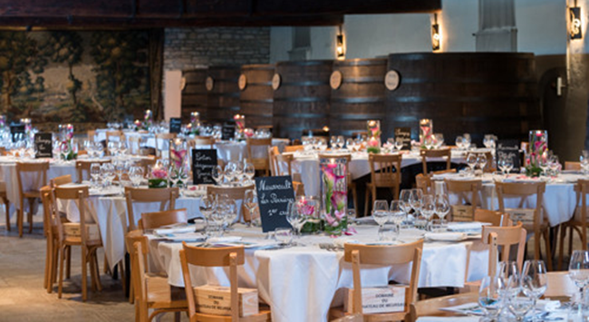 在上世紀(jì)30年代早期,勃艮第葡萄酒的極佳年份雖接續(xù)不斷,如1929、1933和1934年等,但在供過(guò)于求的市場(chǎng)環(huán)境下,葡萄酒庫(kù)存大量積壓,資金回流受阻,酒農(nóng)面臨巨大的經(jīng)濟(jì)壓力。1933年,兩位來(lái)自夜圣喬治(Nuits-Saint-Georges)的有志之士卡米耶·霍迪爾(Camille Rodier)和喬治·法維萊(Georges Faiveley)成立了一間旅行社,致力于推廣勃艮第的葡萄酒。為讓更多人關(guān)注勃艮第葡萄酒,他們做出了一個(gè)大膽的舉動(dòng):在牛頓酒窖(Le Caveau Nuiton)舉行晚宴,邀請(qǐng)各方人士來(lái)參加葡萄酒的品鑒。這便是“榮耀三日”的周六伏舊園城堡晚宴的前身。