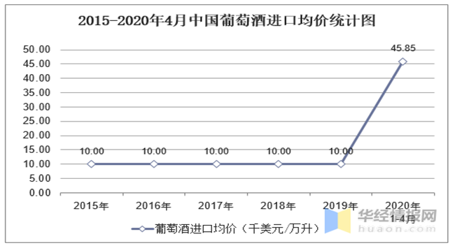 2015-2020年4月中國葡萄酒進(jìn)口均價(jià)統(tǒng)計(jì)圖