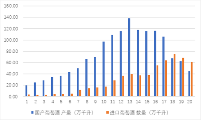 在如此的趨勢之下,國產(chǎn)葡萄酒的發(fā)展更是一波三折,甚至在2017年之后連續(xù)被進口葡萄酒反超。