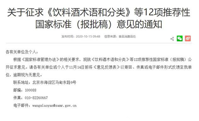 日前,國(guó)家市場(chǎng)監(jiān)督管理總局發(fā)布了“關(guān)于征求《飲料酒術(shù)語(yǔ)和分類(lèi)》等12項(xiàng)推薦性國(guó)家標(biāo)準(zhǔn)(報(bào)批稿)意見(jiàn)的通知”,根據(jù)《國(guó)家標(biāo)準(zhǔn)管理辦法》的相關(guān)規(guī)定,《飲料酒術(shù)語(yǔ)和分類(lèi)》等12項(xiàng)推薦性國(guó)家標(biāo)準(zhǔn)已完成報(bào)批稿,涉及釀酒、鹽業(yè)、白酒等標(biāo)準(zhǔn)化技術(shù)委員會(huì)。