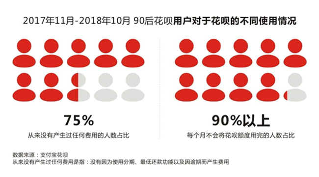 90后消費意識強,是超前消費的核心人群,與此同時,在信用消費方面,他們也很有節制,超過90%的人不會把花唄的額度用完。