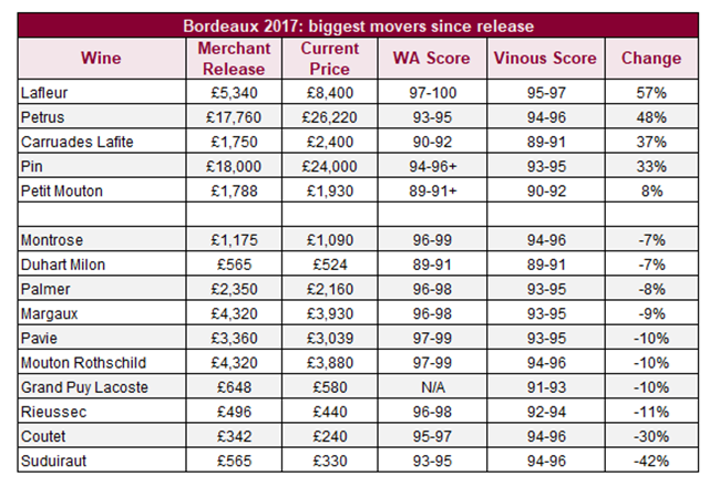 • 波爾多2017年:價(jià)格升跌最大的葡萄酒