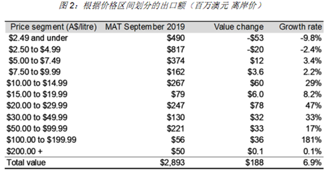 其他值得一提的里程碑包括價格超過10 澳元/升(離岸價)的葡萄酒出口總額首次達到了十億澳元。