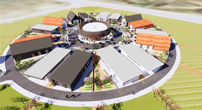 這個由加拿大Greyback Construction的葡萄酒專家組策劃設計的項目類似于歐洲的葡萄酒農業合作社,它為16小型酒業生產商提供了交鑰匙工程,它將成為游客的游覽目的地和當地的產品集散地,它將實現酒莊(酒廠)的低成本投資,為小型酒業生產商提供帶有品嘗室的交鑰匙生產設施而不需要自己投資建設大型設施,它實現了共享生產資源和客戶資源,能夠簡化生產的許可流程,整個小鎮合作進行營銷與公關推廣,并且這個葡萄酒小鎮能夠提供容納600人娛樂餐飲服務。