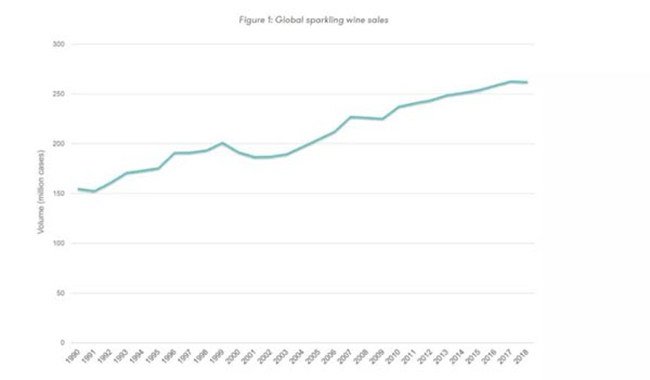 很長(zhǎng)時(shí)間以來,全球氣泡葡萄酒銷量都呈現(xiàn)上漲趨勢(shì)