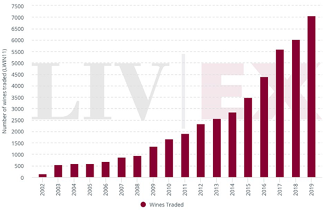 Liv-ex上交易的獨立葡萄酒(LWIN11)*數(shù)量創(chuàng)新高